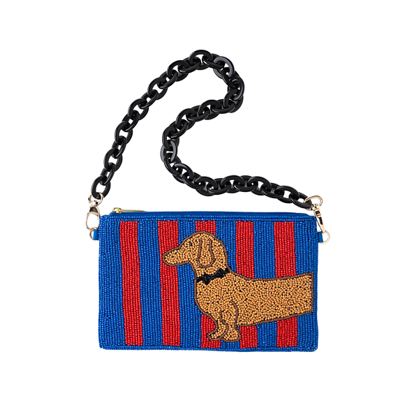 Colorful, hand-beaded bag with zip closure