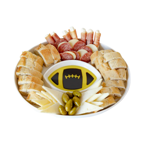 Whimsical house-shaped cheese board with holiday-themed knives set