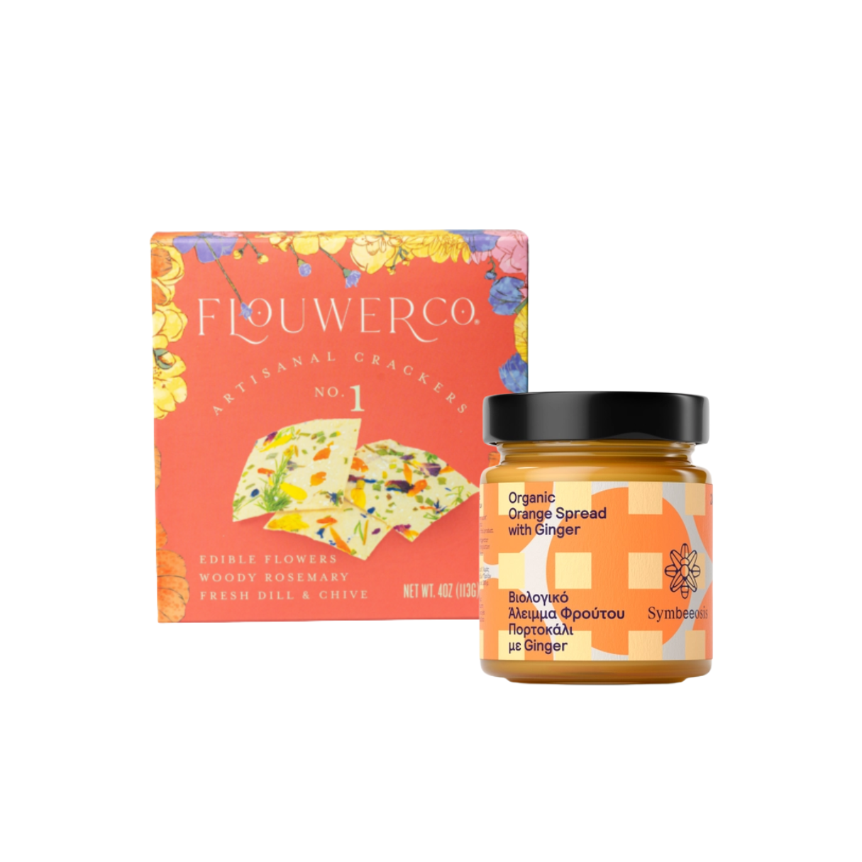 Delicious crackers with edible petals and herbs with Greek marmalade spread