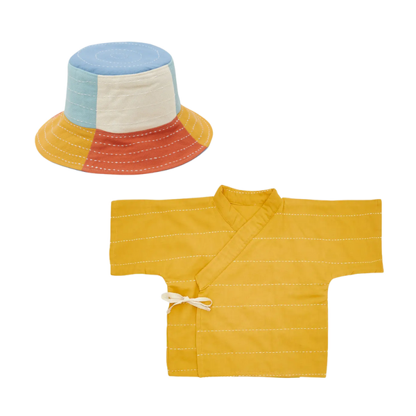 Organic cotton baby blanket set with matching burp cloth and pouch