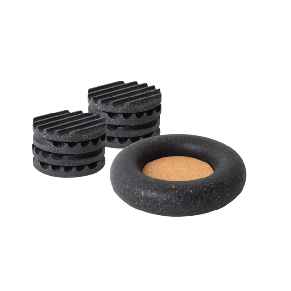 Meet your new favorite party duo—where form meets function with a wink. This playful bundle includes a set of eight hand-cast concrete coasters that keep your drinks stylishly grounded (no more glasses sticking to the coaster!) and a wine bottle coaster inspired by a vintage inner tube for a splash of retro charm. Made from concrete and recycled glass with cork bases, each piece is totally unique, just like your gatherings. Durable, eye-catching, and ready to handle whatever you’re pouring—this set brings good vibes and great design to any table.