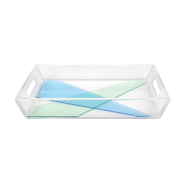 The Wexel Art Acrylic Trays feature layers of acrylic in the base that take advantage of negative space to create a 3-dimensional effect with the triangle patterns. Featuring various color combinations that meld together with a diamond-polished seam.