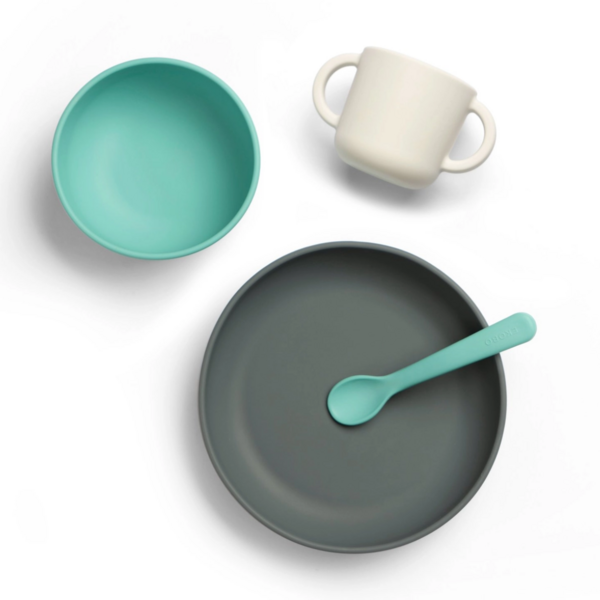 Introducing EKOBO’s newest addition to the kids table: a 4-piece premium-quality silicone baby set. Set includes a sturdy bowl and plate with a hearty suction system to keep these dishes firmly stuck to almost any surface. A two-handle training cup to help transition from bottle while protecting baby’s developing teeth. And ergonomic soft tip spoon designed for first foods and baby-led weaning.