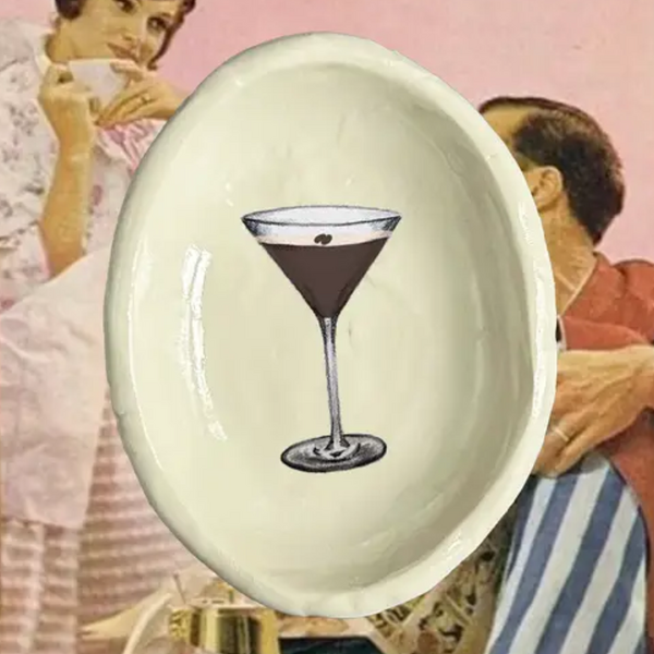 Each handmade trinket dish is uniquely crafted and collaged with an image from the artist’s original illustration. No two pieces are exactly alike—each carries its own charm and character. Measuring approximately 2.5–3.5” in diameter, these petite dishes are perfect for holding jewelry, vitamins, or other everyday treasures. Made from durable polymer clay and finished with a food-safe glaze. To clean, simply wipe gently—do not place in the dishwasher.