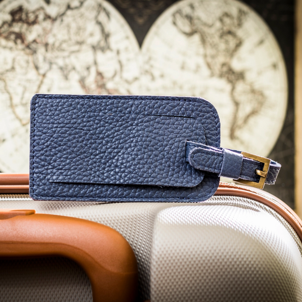 Travel in style with this timeless luggage tag, crafted from genuine pebble leather for a refined, durable finish. Designed to age beautifully with every journey, it adds a touch of sophistication to any suitcase or carry-on. The tag features a secure buckle strap for easy attachment and includes an information card (not pictured) to keep your details neatly tucked inside.