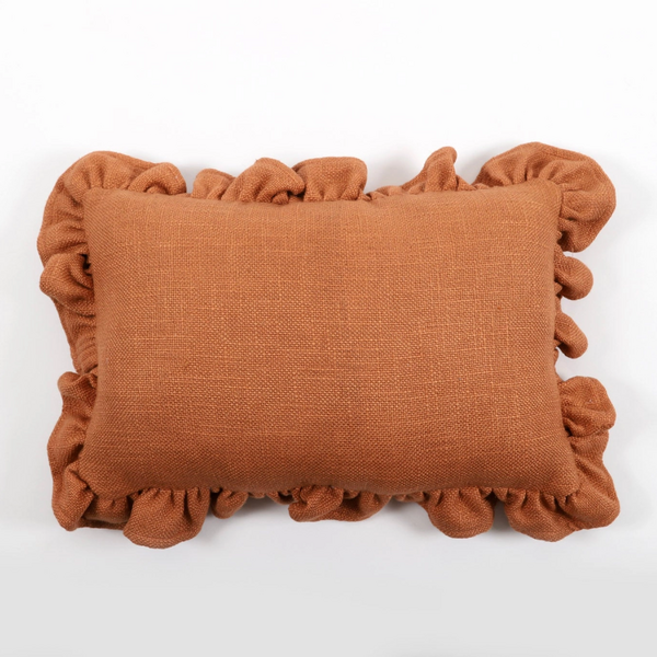 Soft linen pillow with elegant ruffle detail