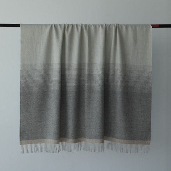 Mid weight throw woven in baby alpaca in natural shades. The fibers are sorted to their colors without using any synthetic and harmful dye materials, an eco-friendly practice used by the sskein yarn mill. It's better for you and the planet. Finished with a brushed effect for softer hand-feel and hand twisted fringes.