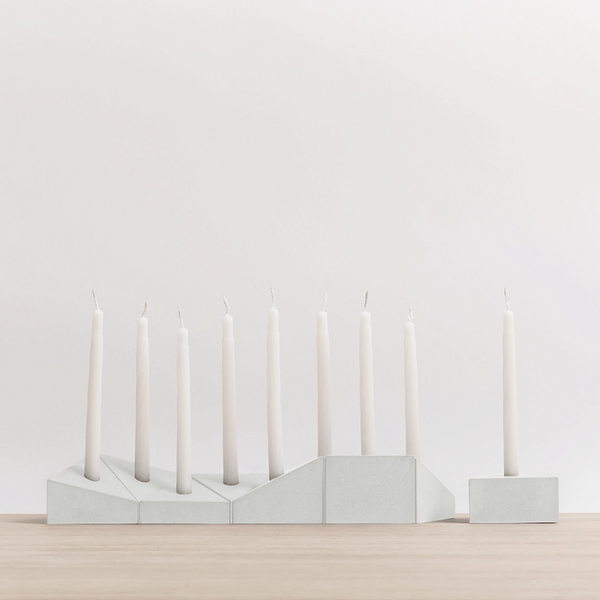 This candlestick is the menorah alteration of the Logifaces game. Create a menorah by placing one prism next to another to form a continuous surface. The Logifaces Menorah offers endless different and playful arrangements for the holiday. Try to arrange the candleholders in a new form each night!