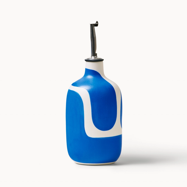 Crafted from white porcelain with a clear gloss interior, this elegant cruet brings artful simplicity to your table. Each piece is hand-painted and individually made in Brooklyn, New York—celebrating subtle variations that make every vessel one of a kind. Designed for both beauty and everyday function, it’s perfect for storing and serving your favorite oils, vinegars, or dressings.