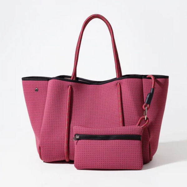 The everyday tote is perfect for work, gym, beach, traveling, and everything in between. The perfect mix between fashion and functionality. Made with our 100% luxe perforated neoprene fabric and soft sailing rope handles to carry comfortably on your arm or shoulder.