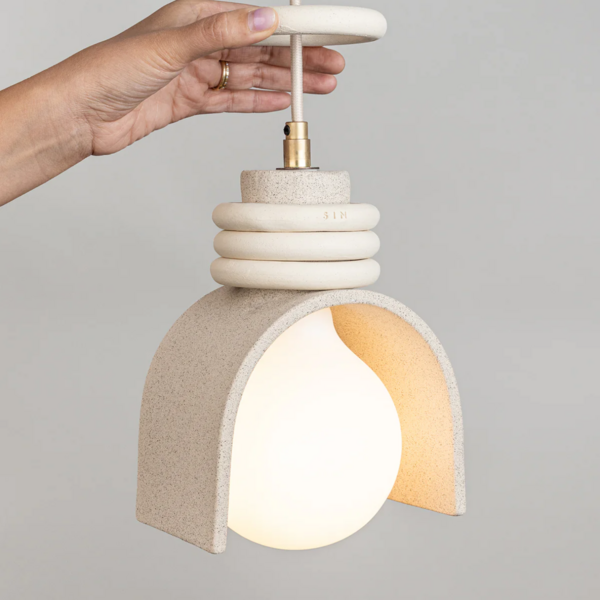 Virginia Sin, the woman behind SIN, is a Brooklyn-based multi-disciplinary designer. By 2007, the collection had attracted the attention of Design Within Reach and received “Most Sustainable” in the Modern+Design+Function Competition. Nine years later, in 2016, it was acquired by The New York Historical Society Museum, where it became part of their 20th and 21st century objects collection. Working to continually broaden her design horizons, Virginia has focused her recent attention on redefining ceramic coils, translating her graphic designs into weave structures and challenging the limitations of clay in the lighting industry, in hopes to bring some extra warmth into the world.