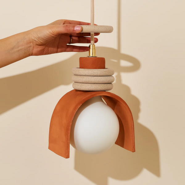 Finished with four hand built coils that revolve around the base just as the moon does the earth, our Lunar Pendant is a simple reminder that the universe is full of beauty. This pendant is available in both plug-in or hardwired, making it an easy choice in any room.