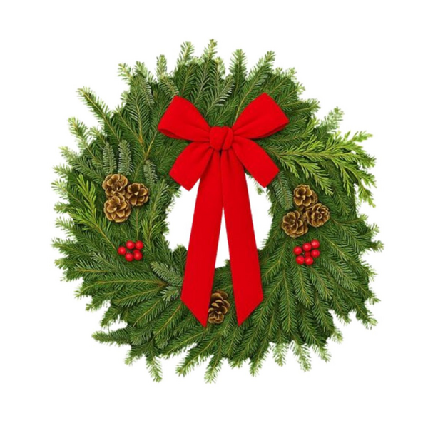 Celebrate the season with the natural beauty and fragrance of fresh frasier fir. Each handcrafted 22" wreath adds a touch of timeless charm to your home, whether hung on a front door or displayed indoors for a festive, welcoming atmosphere.