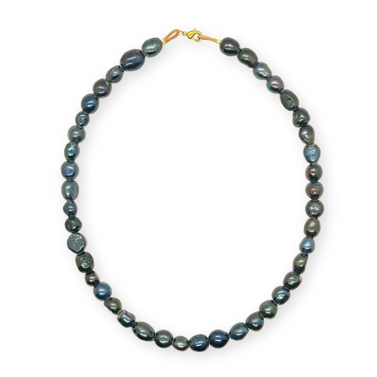 Featuring a strong yet supple leather cord adorned with oversized freshwater pearls in classic white or bold black, the Perla Necklace channels confident, modern style. At 24 inches long and finished with solid brass findings, it strikes the perfect balance between presence and versatility—equally suited for elevated occasions or everyday wear.