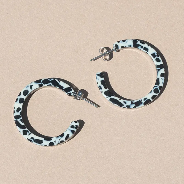 These acetate hoop earrings bring together modern simplicity, thoughtful materials, and effortless everyday style. Designed by Natalia Riboldi, each pair is crafted from cellulose acetate—a renewable, wood-pulp–based material—making them an eco-friendly, sustainable choice without compromising beauty. Hypoallergenic stainless steel posts ensure comfortable, all-day wear, even for sensitive ears.